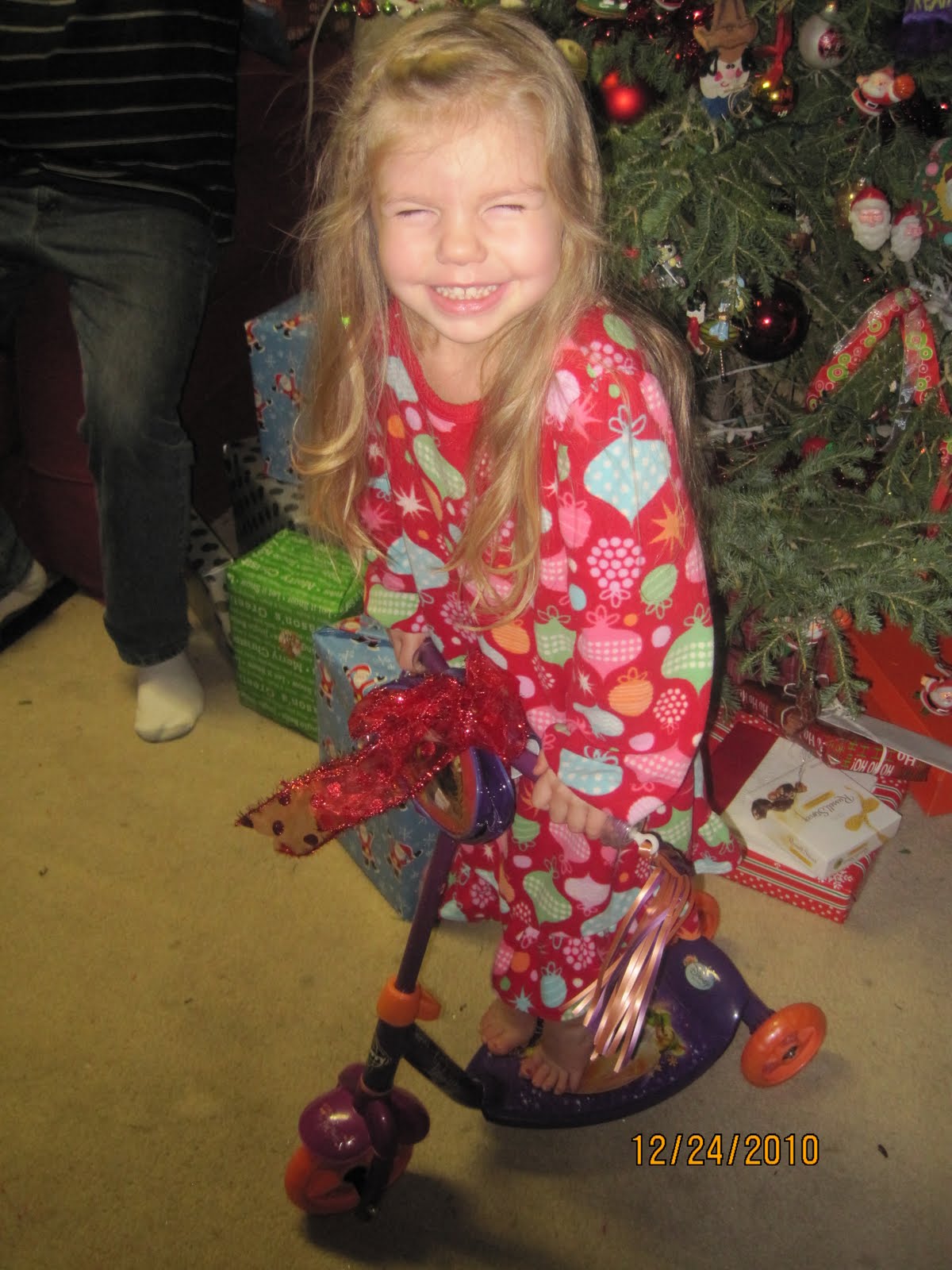 Then off to presents. Ellia's big deal present was a Tinkerbell scooter that she has been asking for since her birthday.