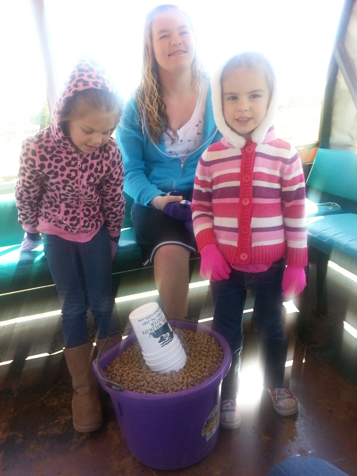 the next morning it was pretty cold, but we braved the weather and used a discount to visit Global Wildlife Center. It was AWESOME!! Jamie bought a huge bucket of food and we had these little cups to scoop out and feed to the hundreds of animals. It was like a little safari! The girls got the hang of it really quick and the animals were of course used to being fed. One even took Ashlyn's cup from her and held it over its nose while it ate every last bite...then ditched the cup.