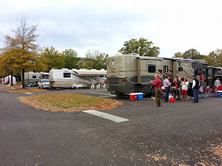 All in preparation for seeing the real deal. We took a weekend trip and got to see first hand what tailgating is like at the University of Alabama. CRAAAZZZYYY!! They had a parking lot just for campers, and its overflowing! Big screen set up right outside.
