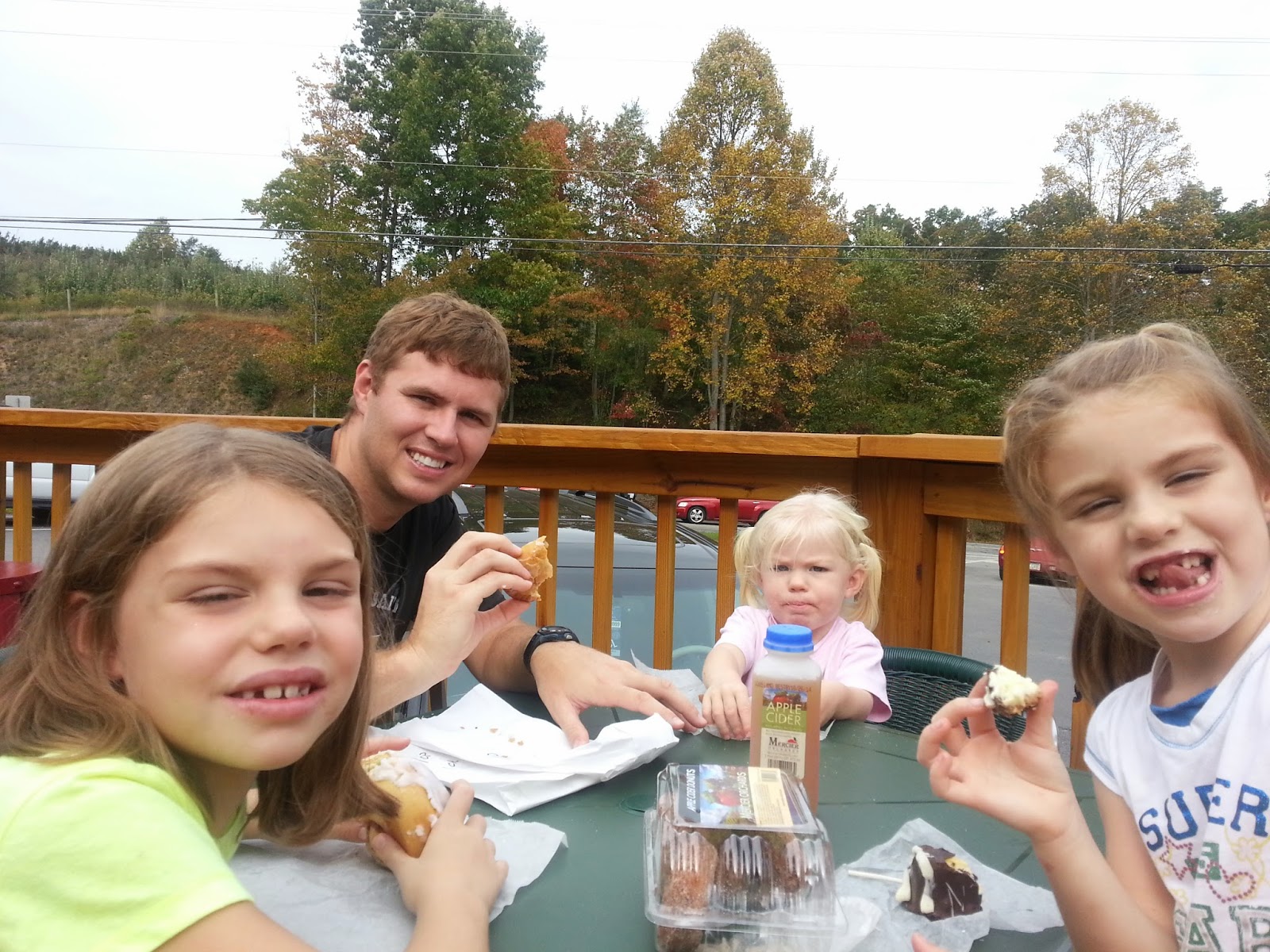 Jeremy knows me well. Even though it was a 40 minute drive, he decided we should go to this apple "stand"....I LOVED IT!! It was quite the tourist desintation, but that's ok, we're tourists! It was a big shop inside with at least three different areas to buy food to eat right then. There was a café, a bakery and a sampling bar. It was really cool to try two or three different types of apples back to back so you could tell the difference in sweetness and crispness etc. I tried Jonagold and cameo that I can remember and I think the cameo was much sweeter? (which I didn't like) Wish I could remember better now! They had apple EVERYTHING plus lot's of other things to gift like jams and jellies from other farms etc. We ended up each choosing something from the bakery. I choose apple cider donuts, Jeremy got a fried apple pie, Ashlyn picked something with cheese cake in it and Ellia picked a big cinnamon roll. Plus we had nice cool apple juice to drink. One of the best parts was that they had windows you could look through to see how they bring the apples in from the field, strip them of stems and leaves, wash them, sort them and bag them. I love that kind of stuff.
