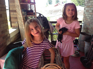 The girls had a lot of fun playing with the goat, and chickens at Jordan's house. They also enjoyed some rides up and down the dirt road.