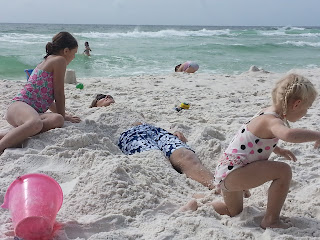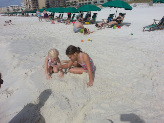 We had a nice dinner Saturday evening and the girls meals included buckets. Early the next morning they were back in the pool with their new toys. They even found a sand colored crab in the pool and had fun releasing it in the ocean. Ashlyn had to show everyone that walked by what she had in her bucket, and most people were pretty interested. I was proud of her for being so brave.