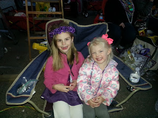 For the truck parades we switched sides of the street occasionally and man did we get some loot. It was nice to have our picnic lunches too, so we could just sit back and watch truck after truck. Ashlyn ended up with a porcelain doll and thought it was so crazy something so beautiful was a Mardi Gras throw.